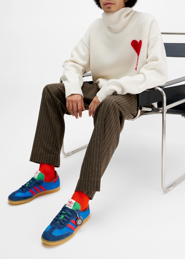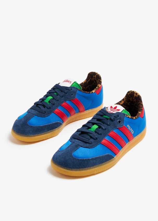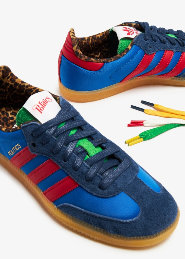 From Southwest USA, Sneaker Politics teams up with adidas to create the Samba 'Consortium Cup' sneakers - an OG with a twist. As part of the inaugural Consortium Cup tournament, Politics focuses on vintage maximalism for its entry. The classic Samba style is updated with a shiny satin nylon base, enriched with premium leather and hairy suede overlays and a playful animal-print insock.