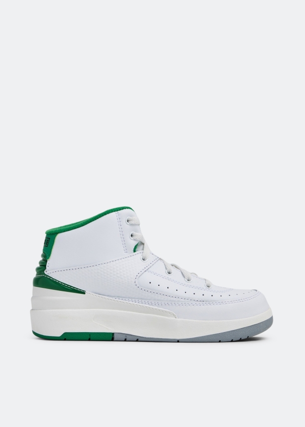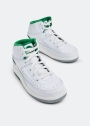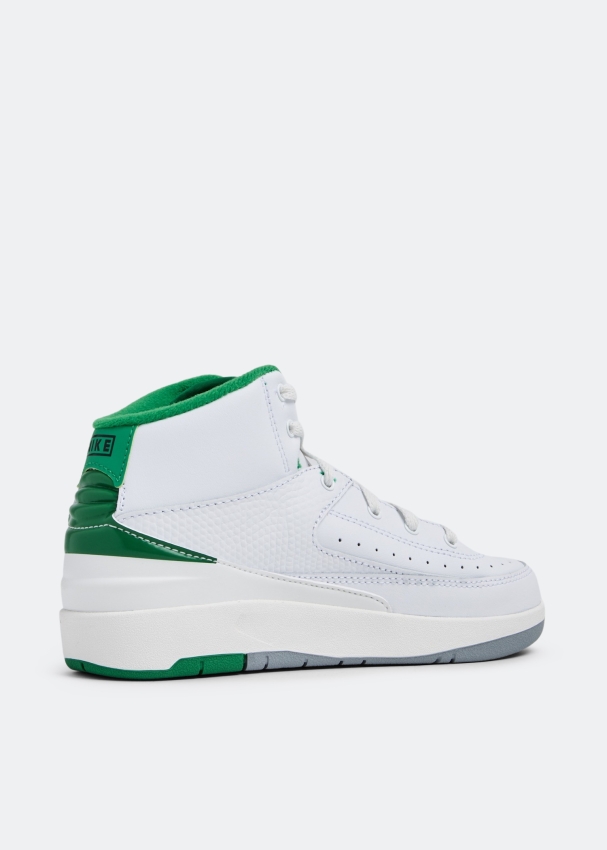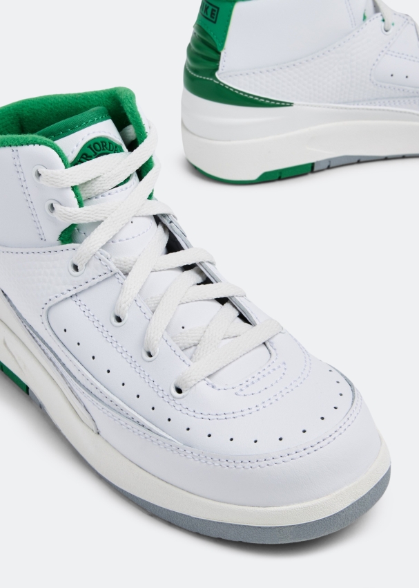 We're team Air Jordan 2 Retro sneakers with these shoes. With tonal laces that add the right amount of contrast to these classic shoes, the hue on the sole makes it unique to your kid's style. Added features include an Air-Sole unit, rubber sole for traction and cushy midsole for comfort.
