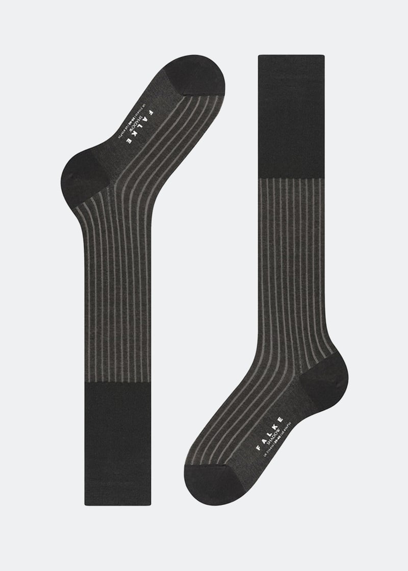 The Shadow knee-high socks from Falke offer a stylish yet comfortable fit thanks to their two-tone ribbed structure. Designed with flat whipped seams for pressure-free toes, they offer extended cuffs for wrinkle-free fit and reinforced stress zones for optimal durability.