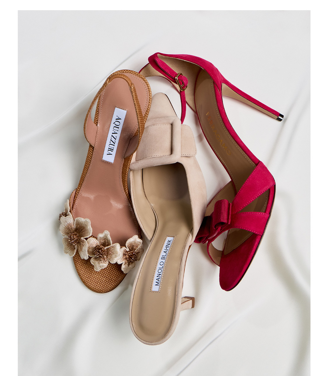 Your dress may be the main character, but your shoes do the heavy lifting and they deserve their close-up. Clean lines, considered height, and shimmering detail to catch the spotlight without competing for it. From Jimmy Choo sandals to Malone Soulier pumps, this is a modern bridal shoe edit built for aisle and beyond.
